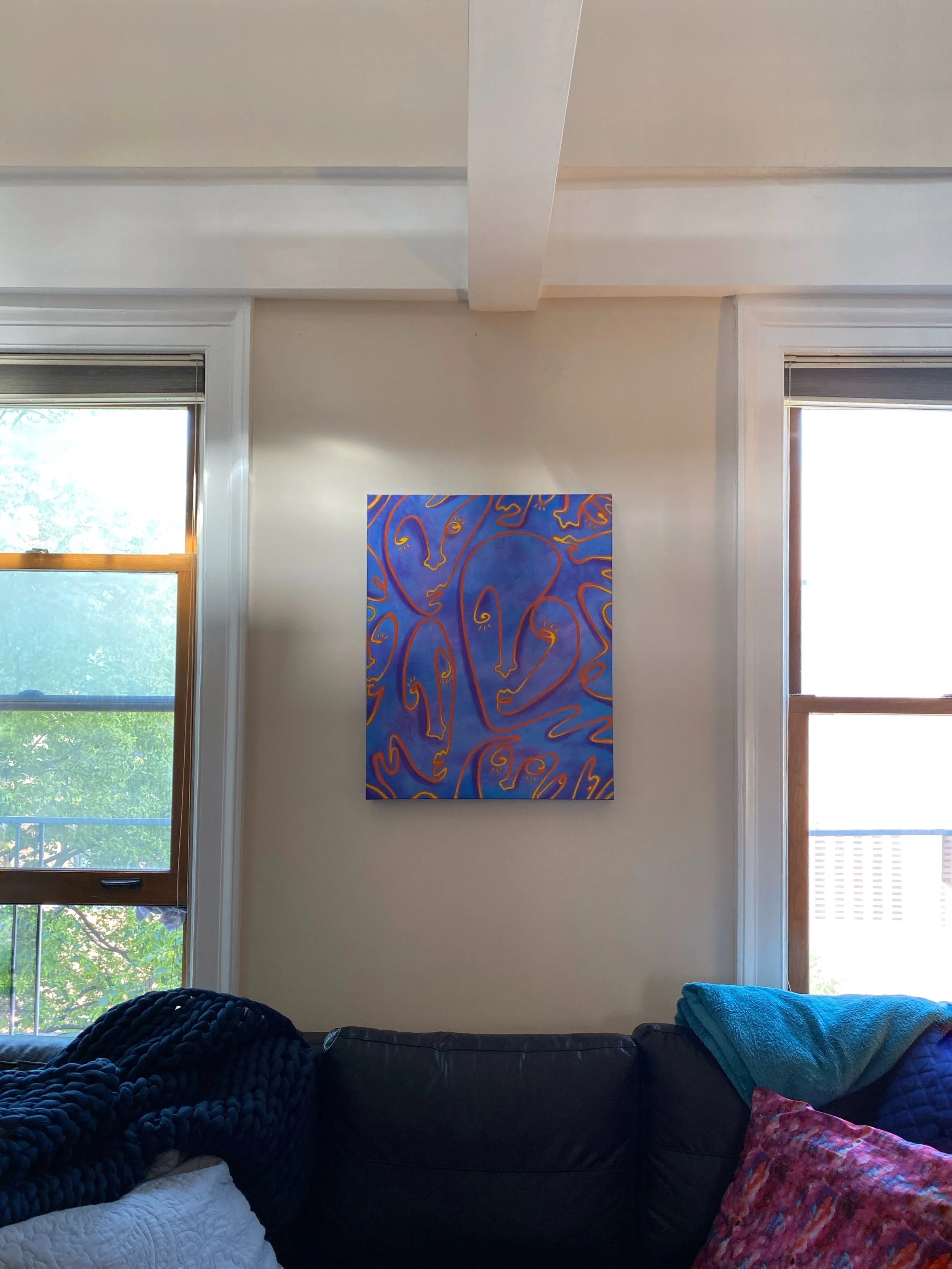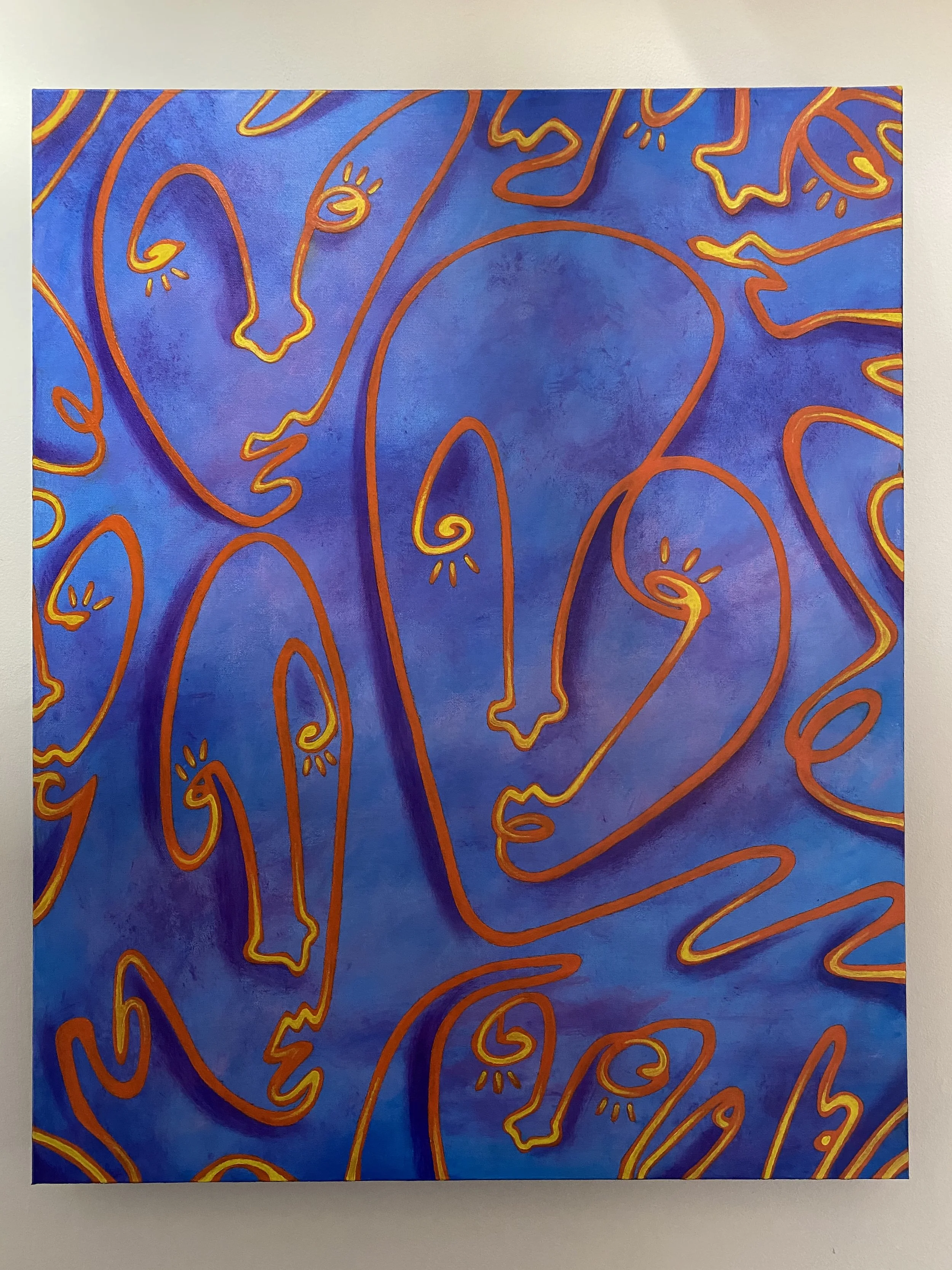 A commissioned original: the design adapted from a single-line illustration I frequently return to creating, dubbed “Whispers” by the individual whom this painting now belongs to. This is the first of many in my whispers collection.